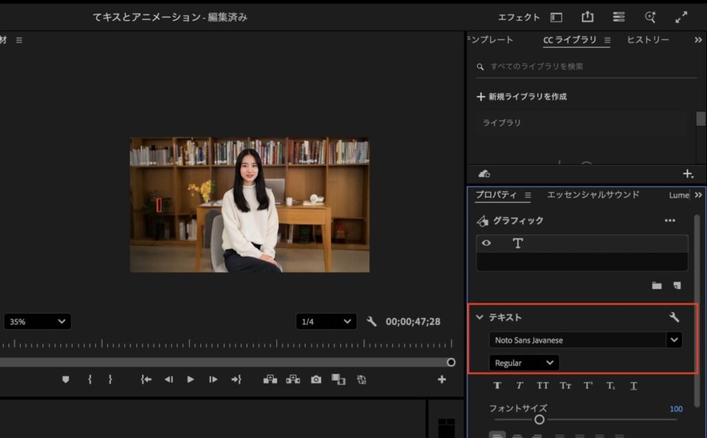 「エッセンシャルグラフィックス」パネルの「テキスト」から変更できます。